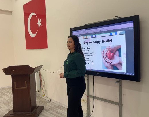 Yüksekokulumuz Hemşirelik Bölümü 4. sınıf öğrencileri Hatice MEMİ, Dilara ESEN, Semanur ERBEK, Fadile KURT ve Miraç TURAN Afşin Eshab-ı Kehf Anadolu Lisesi öğrencilerine ''Organ Bağışı'' konulu eğitim verdi.