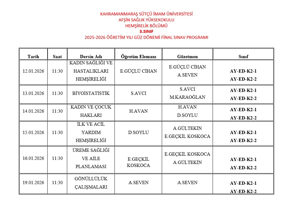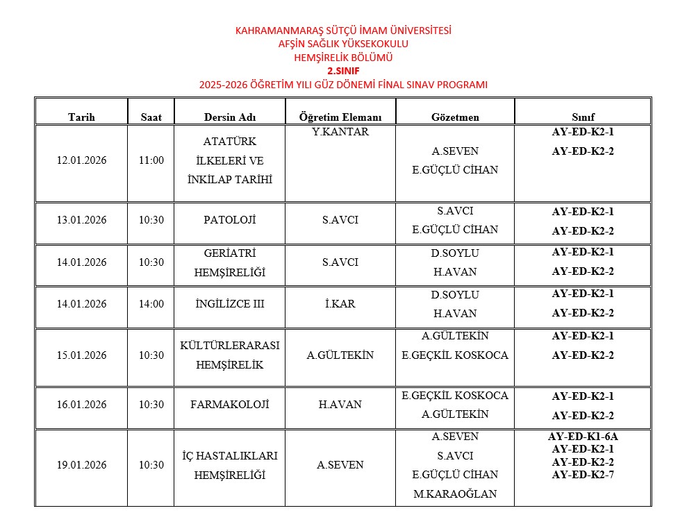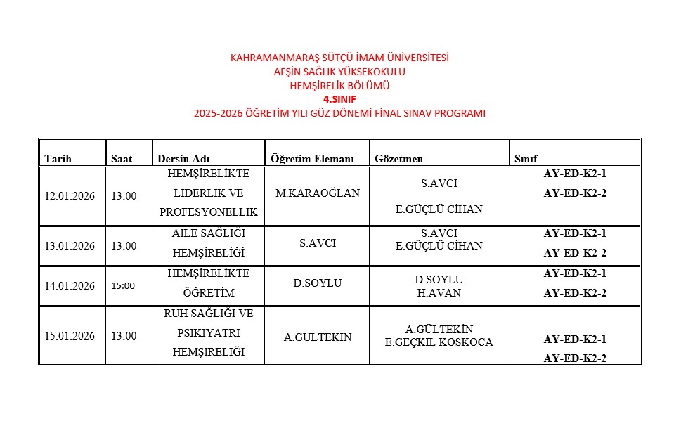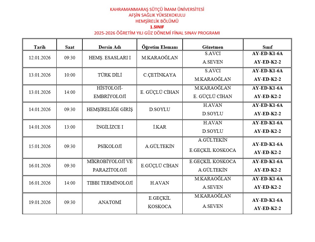 30.12.2025 - 25-26 Güz Dönemi Final Sınav Programları